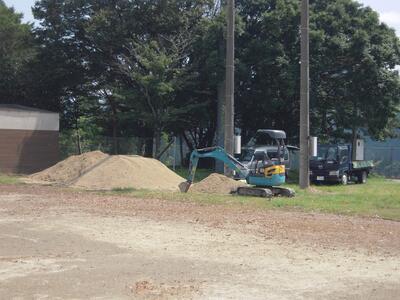 学校の敷地の一角に「真砂土」が運ばれてきました。小学校の運動会で使用したり、中学校体育大会等で使用したりするものです。「真砂土」は時間が経つと堅くなってしまい、「いざ 使おう」とスコップを「真砂土」にさしても、力のいる作業になってしまいます。