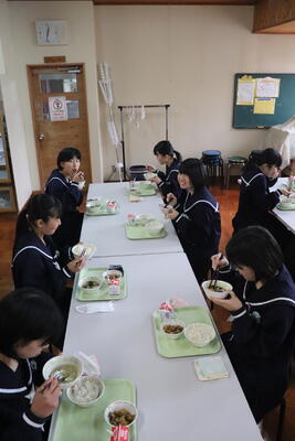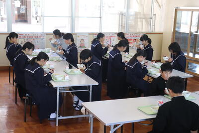 これまで本校の給食の時間では、新型コロナウイルス感染症の拡大状況から、黙食に取り組んできましたが、5月8日に5類感染症に引き下げになることにあわせて、黙食の緩和の段階的な取組を行うことにしました。