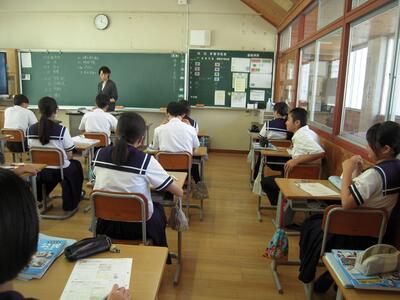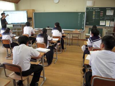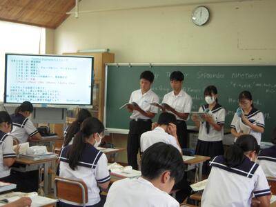 1年生の英語、数学の授業の様子です。英語では、英作文のつくり方、数学では、1次関数を学習していました。