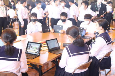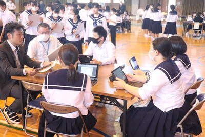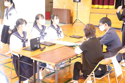 3年生は、これまでの「総合的な学習の時間」において、日之影町のヒト・モノ・コトを学習し、日之影のよさを知るとともに、様々な発見をしてきました。貴重なご意見やご助言をいただきながら、生徒や職員の思いもお伝えし、これまでの学びを振り返ることができました。