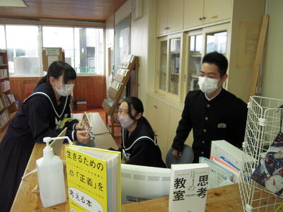 今日は雨が降り、運動場で長縄ができません。生徒のみなさんは、この昼休み時間をどのように過ごしているのか、その一部をお知らせします。