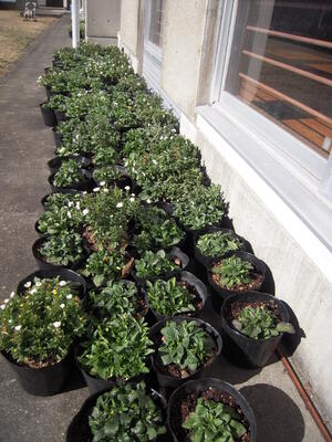 2学期に生徒のみなさんと教頭先生が植えた「パンジー」と「ノースポール」がすくすくと育っています。寒さに負けず、すくすくと育っています。