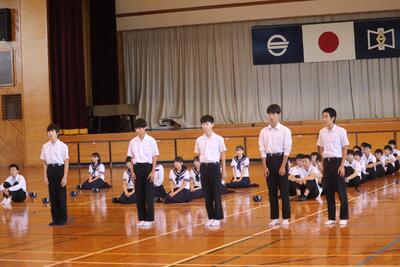 10月15日(火)に門川町勤労者体育センター周辺コースで行われる、「日向・東臼杵・西臼杵地区合同中学校駅伝大会」に出場する男子チーム、女子チームの皆さんです。駅伝主将 興梠 真人さんが挨拶をしました。