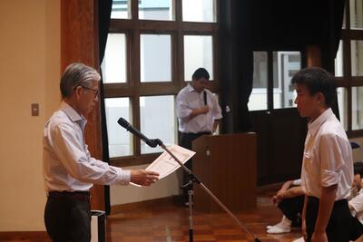 飯干 蔵人さんが生徒会代表して激励の言葉を言いました。