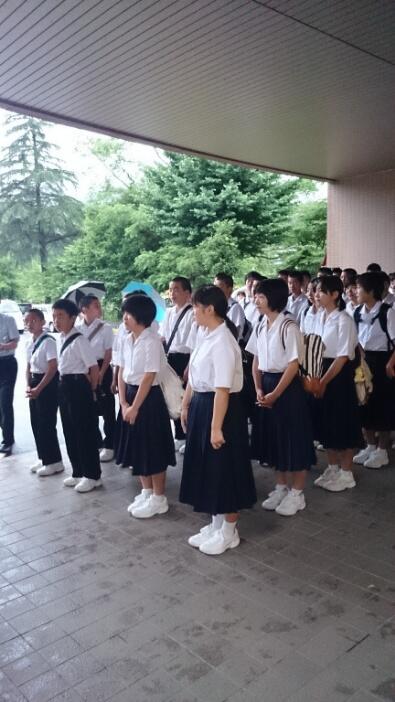いよいよ3泊4日の修学旅行へ出発です。朝の出発式の様子です。元気に行ってきます!