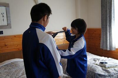 男女に分かれて、ジンギスカンの音楽に合わせての縄跳びとタグラグビーをしました。