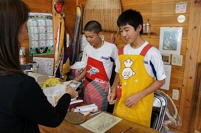 修学旅行1日目、五ヶ瀬町PR活動で販売します!!