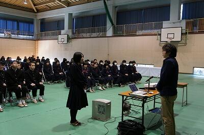 まず、全校生徒・保護者を対象に講演会を行いました。