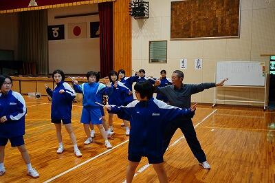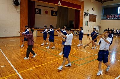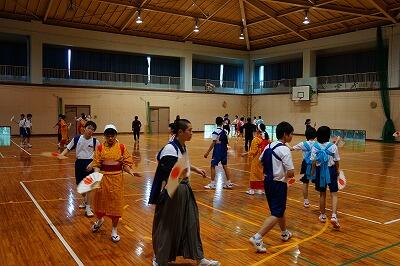 6月23日、東京板橋区大山商店街ハッピーロードで行う修学旅行の五ヶ瀬町PR活動の一環として行う郷土芸能「団七踊り」の練習を本日から始めました。上組・桑野内地区の指導者4名の方々に講師をお願いして指導していただいています。
