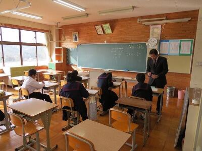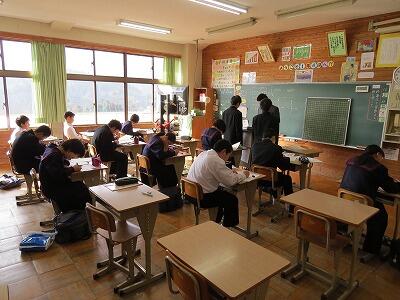 12月25日、冬季休業中の学習会をしています。町教委の先生にも協力していただきながら、がんばっています。生徒たちも朝早くから登校してがんばっています。
