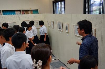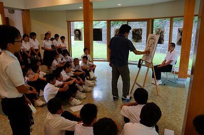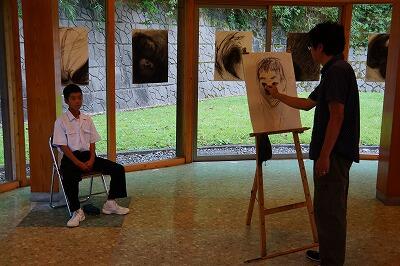 9月9日に宮崎市在住の画家、島㟢清史氏による美術指導がありました。現在、五ヶ瀬町で個展を開かれている関係で本校の生徒全員に美術指導をしていただきました。最初に氏の絵画を鑑賞した後、各学年一人ずつの顔をデッサンしていただきました。本校生徒もまじかにプロのデッサンを見ることができて感動していました。滅多にない機会をありがとうございました。
