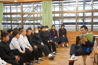 11月17日、「第2回教師の手による読み聞かせ」を行いました。今回は、6名の先生による読み聞かせでした。中学生も毎回、真剣に聞いてくれます。