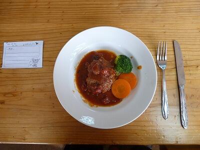煮込みハンバーグを作りました!時間が予定よりかかってしまいましたが、何とか時間内に完成しました。味は・・何と!びっくりするほどおいしくできました!
