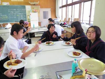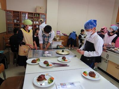 1年生が家庭科調理実習で「煮込みハンバーグ」を作りました。校長室にも届きましたので早速いただきました。これが絶品でした。中までしっかり火が通っていて、ソースも美味しい。名シェフがいっぱいです。