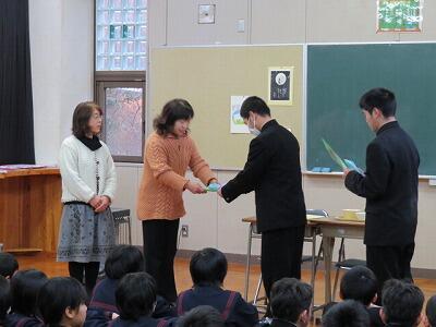 給食を作ってくださる先生方に、寄せ書きとハンドクリームをプレゼントしました。