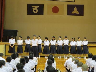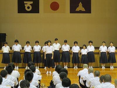 27年度の生徒総会が行われました。三ケ所中学校としては最後のこの1年をどのように過ごしていくか、今年のスローガン「有終の美 誇り高き三中魂!」をもとに話し合いました。各学年とも自分たちの意見を積極的に述べることができました。