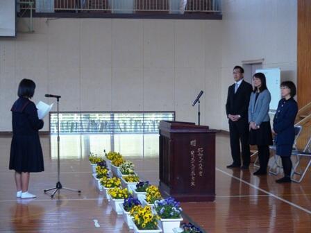 3月25日(水)、修了式がありました。1・2年生の代表が1年間の反省と、来年度への意気込みも含め述べてくれました。春休みの過ごし方や、学年が上がることに関して学習での復習などをしっかりしておくことを確認し、年度を締めくくりました。