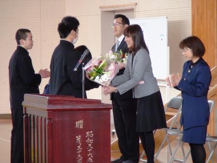 3月27日(金)、本校の離任式を行い、転出される3名の先生方から最後の言葉をいただきました。最後に生徒会役員より花束を贈呈して、生徒全員でアーチを作り、先生方に退場していただきました。先生方、本当にありがとうございました!