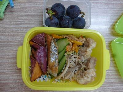 サツマイモやブドウ、きのこ類やクリご飯など、秋を感じる食材の入った