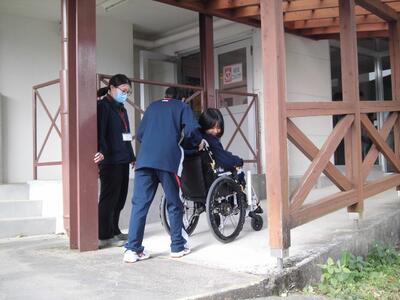 車いす体験では、機能性が向上している車いすを動かすことは容易でした。しかし、実際に乗ってみると小さな段差を超えるときの傾き具合や坂道でのスピードなど当事者でないと分からない恐怖もあり、改めて相手の気持ちになって行動することの大切さを学びました。