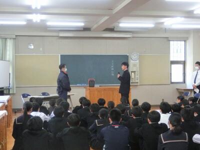 最後に生徒代表が「県内や延岡での逮捕者がいることで身近に感じました。隠語で薬物が流通していることに驚きを感じました。将来、誘われるような場面に出くわしたとしても、勇気をもって断っていきたいと思いました。本日は貴重な話をしていただき、ありがとうございました。」と感想と共に感謝の言葉を伝えました。
