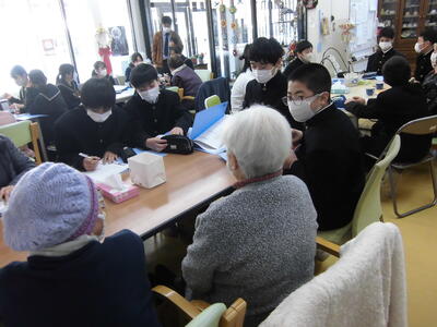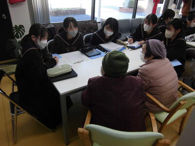 さらに、12月3日㈬には、ふれあい施設を訪問させていただき、利用者の方々から昔の五ヶ瀬についてや課題、将来の夢などについて伺う機会となりました。昔の話では、以前の五ヶ瀬町には多くのお店があり、人口も多かったという話題が挙がっていました。また、戦争の話や鉱山があった話など、普段の生活ではなかなか聞くことのできない話を伺わせていただきました。
