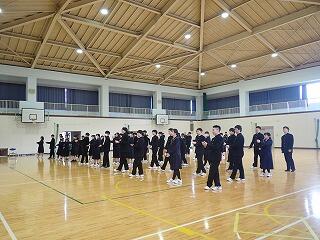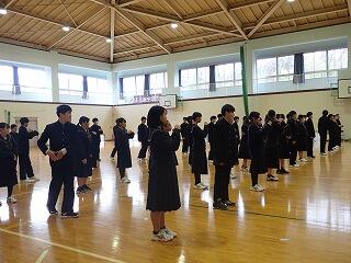 生徒会代表の生徒が3学期の抱負を発表し、これまでの学校生活を振り返りながら、学習面や生活面での目標、新しい学年へ向けての決意を述べました。自分自身を見つめなおし、前向きに努力しようとする気持ちが伝わってくる発表でした。