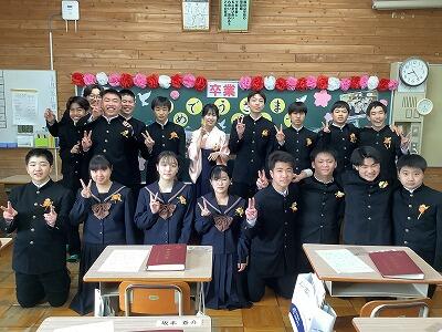 早朝こそ寒さが感じられましたが、穏やかな天気の中、17名の卒業生は3年間を振り返りながら、涙と笑顔で旅立っていきました。