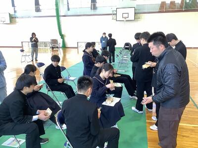 森山先生から来年度の大会に向けての思いを伝えてもらった後に、「体育大会を終えた後にどんな成長の姿が見られるか?」そのためには、「どんなことに取り組めば達成できるか?」という問いに対して真剣に考える様子が見られました。