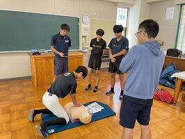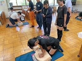 西臼杵広域行政事務組合消防本部の方に来ていただき、心肺蘇生法やAEDの使い方について詳しく教えていただきました。