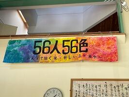 「56人56色 ~みんなで描く楽・愉(たの)しい五ヶ瀬中~」にちなみ、生徒会役員の手によって、さまざまな色を重ねた色鮮やかな掲示物が完成しました。