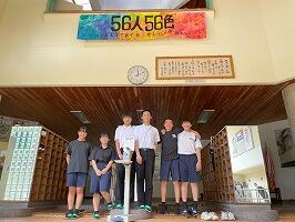 また、記念誌やオリジナルバック・ペン、教室後方の棚、プロジェクターが記念品として紹介されました。