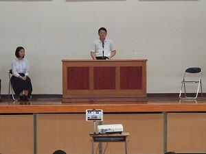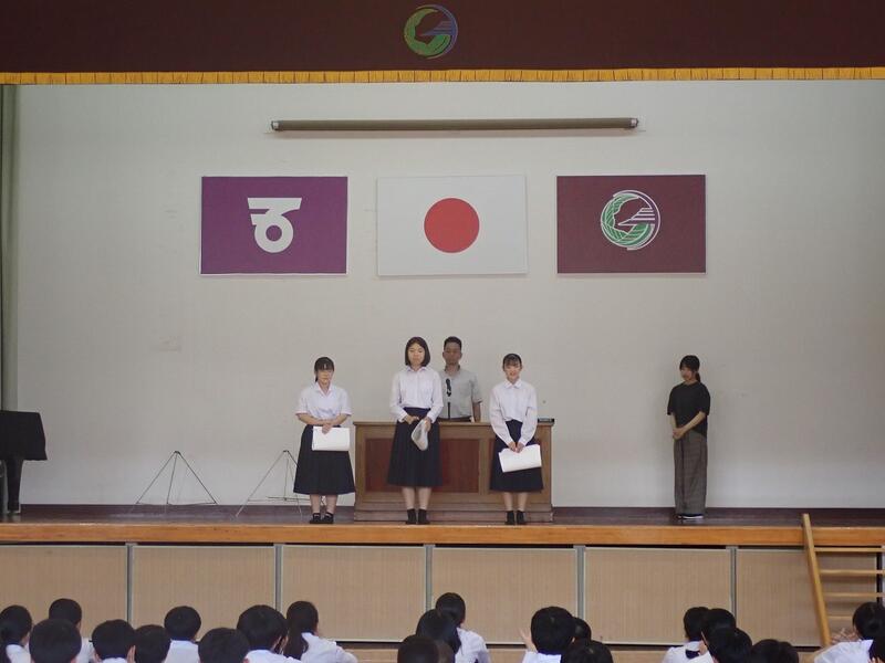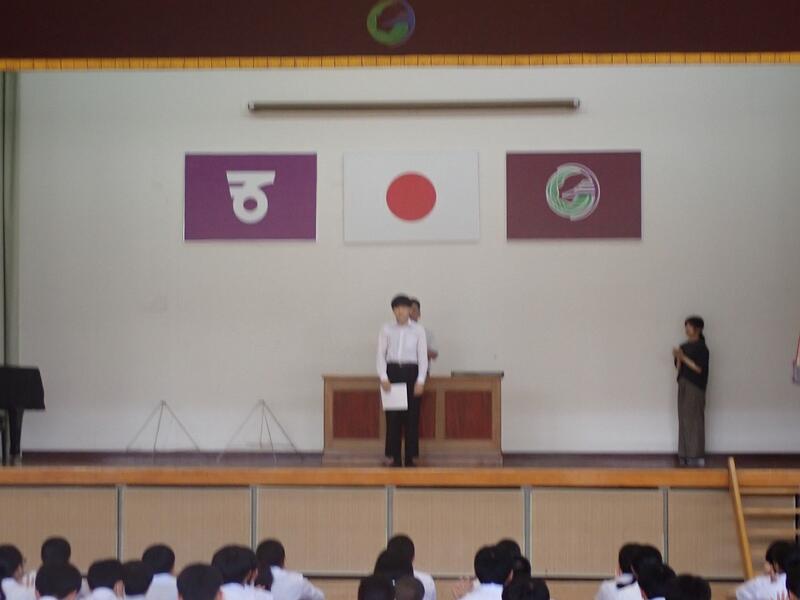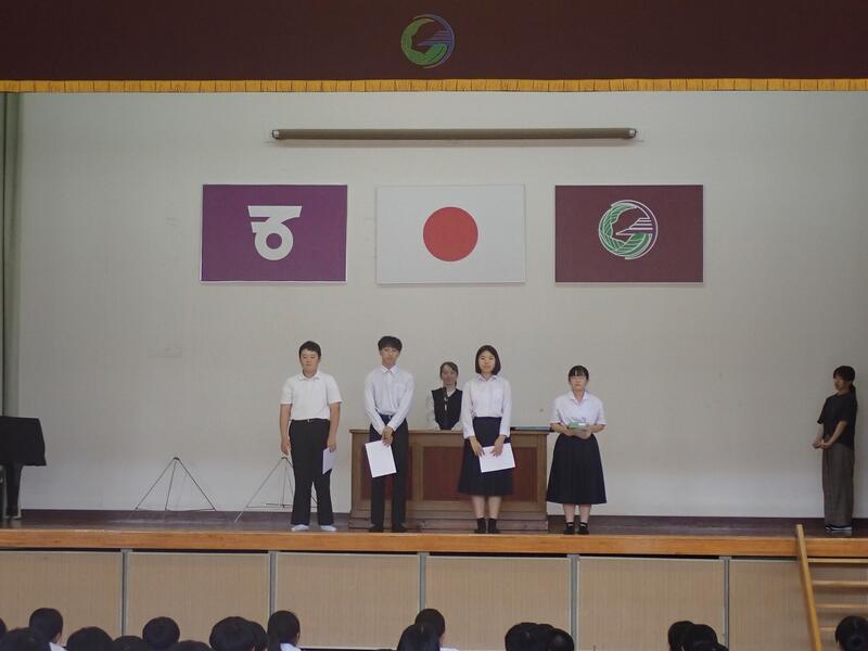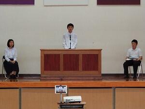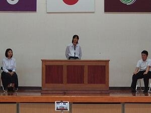 生徒会代表から2学期の抱負の発表があり、「1学期とは違う成長をしていきたい」と力強く決意表明をしました。