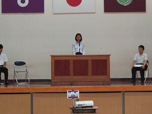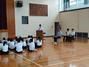 その後の全校集会では、学習面や保健安全面、生活面や部活動について、先生方からお話をしていただきました。