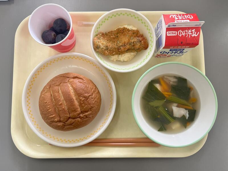 本日は、そんなG授業の「ぶどう学習」でお世話になっている興梠浩幸さん(桑野内)のぶどうを提供していただきました。生徒も職員も味わいながら食べていました