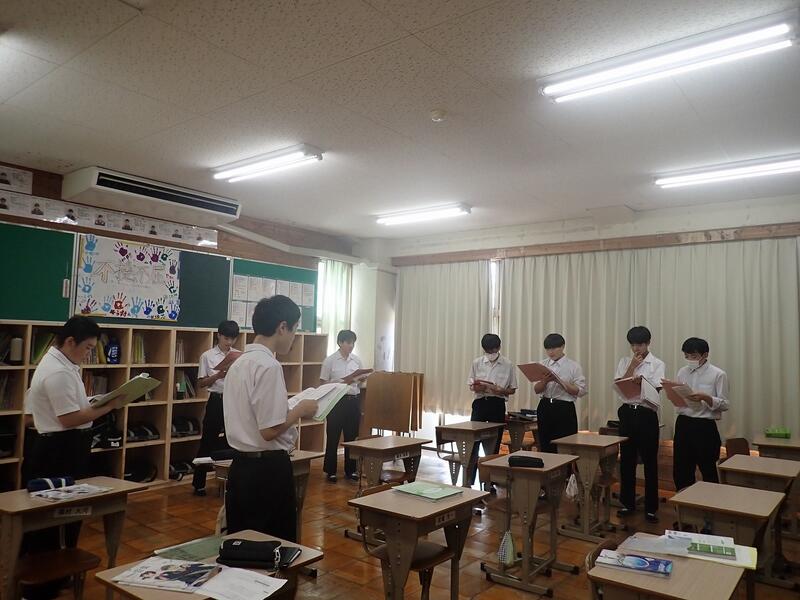 図書室で声出しを行い、各教室に分かれパート練習行いました。