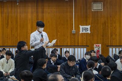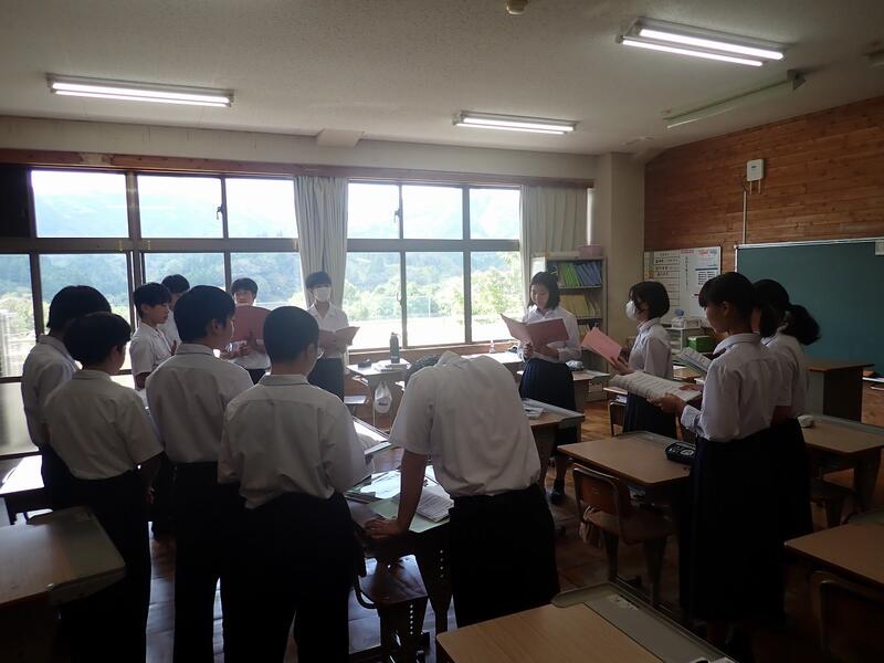 発表会終了後、3年生には安堵の表情が見られました。校内から推薦された5名の生徒は、町議場で行われる審査会へと進みます。