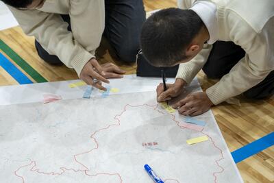 そして、各校の生徒がバラバラになりながら班を組みグループワークを行いました。
