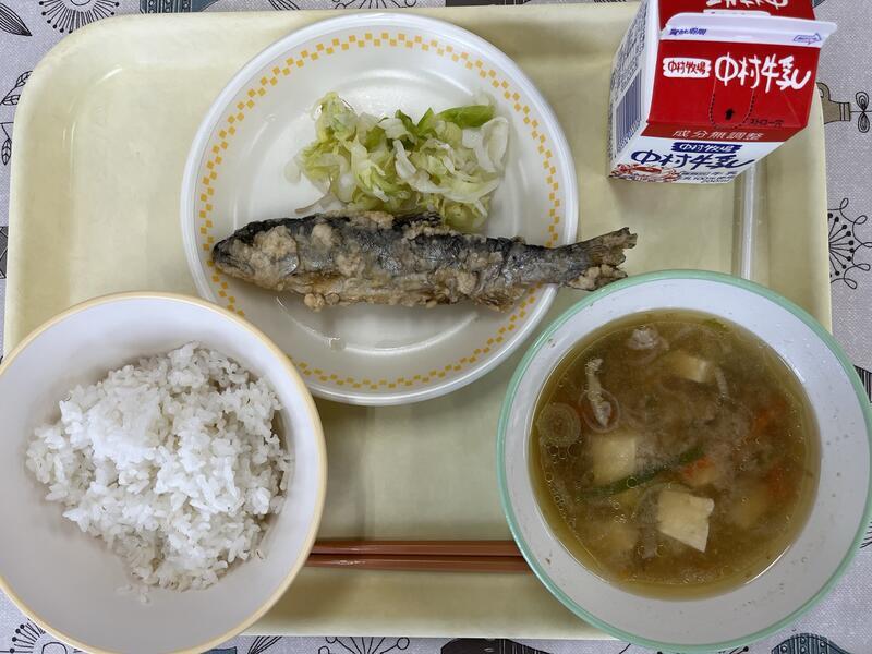 塩焼きもとってもおいしいのですが、給食室では焼く機会がないため、唐揚げにしていただきました。