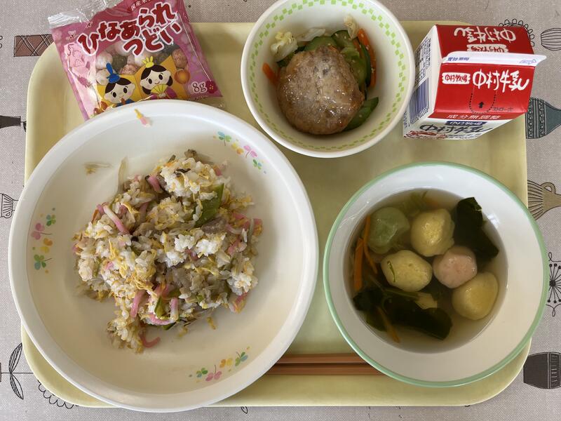 ちらし寿司のにんじんはお花型になっており、かわいらしい給食になりました。