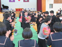 それぞれが町の今日的課題の解決に向けた提案を行い、想いを込めて発表することができました。小学校1年生から9年間かけて学んできたことの集大成となる素晴らしい発表でした。 これからも町の課題に主体的に向き合える姿勢を忘れないでほしいと思います。