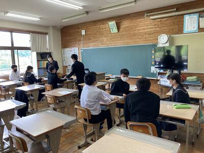 なお、今回は職業講話②でした。9月に予定しておりました職業講話①は学年閉鎖のため実施できませんでしたが、日程を調整して今年度中に実施する予定です。職業講話①は五ヶ瀬町に関すること、福祉に関することがテーマとなる予定です。