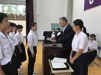 これまで五ヶ瀬中を引っ張ってきた生徒会総務、全校専門委員長のみなさんお疲れ様でした。今回から新役員になり2年生が中心となります。五ヶ瀬中をよりよくするために頑張ってください。