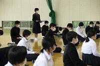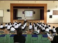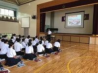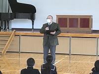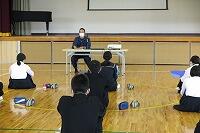 校歌斉唱のあと、各担当の先生方から、夏休みの過ごし方などについてお話をして