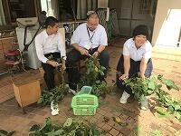 本日、4時間目に枝豆を収穫をしました。それから、枝に付いている枝豆をはさみで切りました。途中珍しいお客さんもきてびっくりしました。やっと枝豆が収穫できて良かったです。