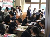 本日から五ヶ瀬中学校のオープン授業が始まりました。トップバッターは本校研究主任の安田先生でした。猪野教育長、田中指導主事、小学校の校長先生、教諭、中等学校の教諭、本校教諭などたくさんの方々が参観してくださいました。本校の研究はRS(リーディングスキル)を意識した授業の展開です。普段の授業をいかにRSにつなげるかということです。参観して、参考になる部分もたくさんありました。今後、本校の全教諭が行います。数学が特に目玉になっていますので是非、参観ください。