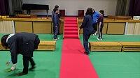 大掃除、ワックス掛けのあと、まず体育大会結団式がありました。