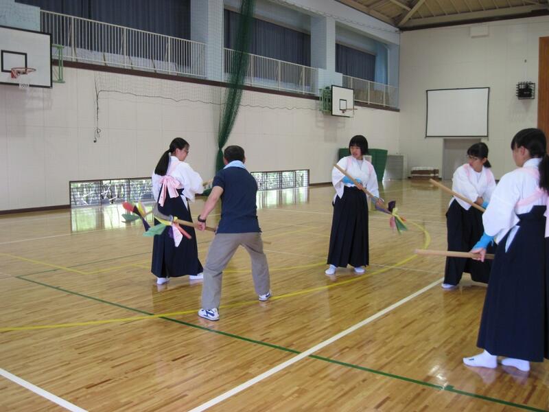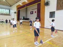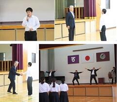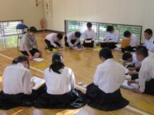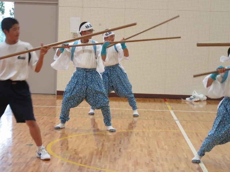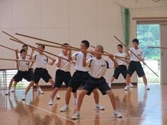 団七踊りは玄関前で、棒術・長刀は体育館で練習を行いました。今年度初めての練習でした。1年生は、初めて踊る生徒も多く、熱心に話を聞いて、がんばっていました。2、3年生が、優しく教える姿も多くありました。