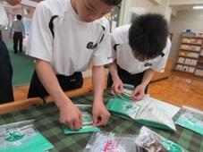 本日、1、2時間目の総合の時間に、椎茸の袋詰め作業を行いました。