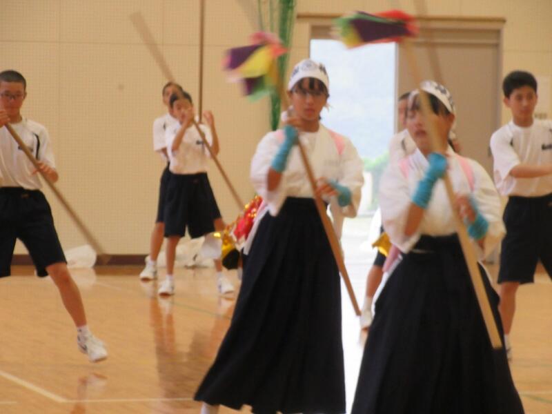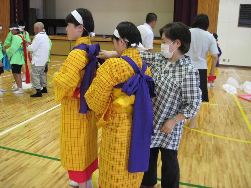 暑い中でしたが、生徒は、衣装をまとい、草履を履いて、地域への感謝を示しながら、精一杯踊りを披露して頑張ってくれました!